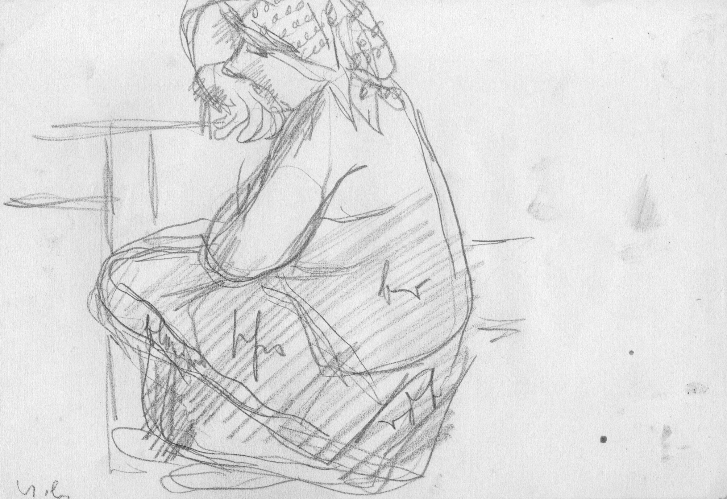 Hockende Magd