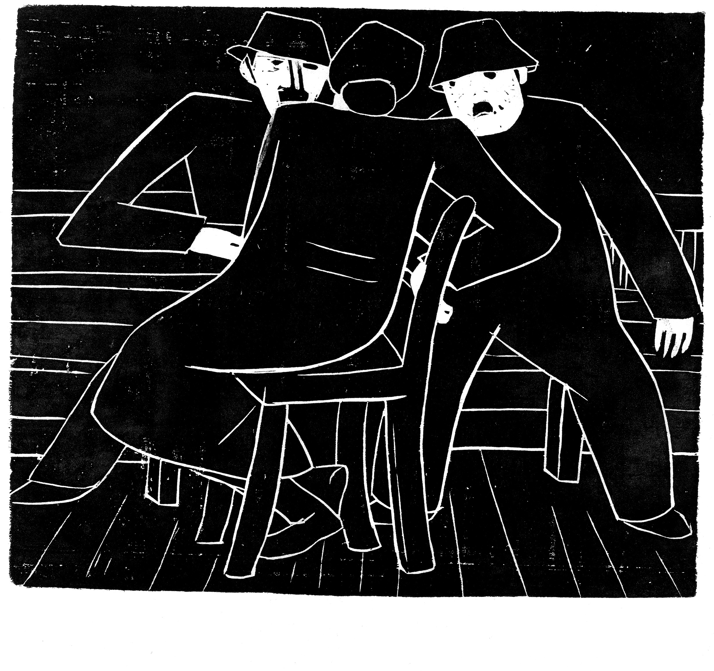 Sitzende Frau ud Maenner