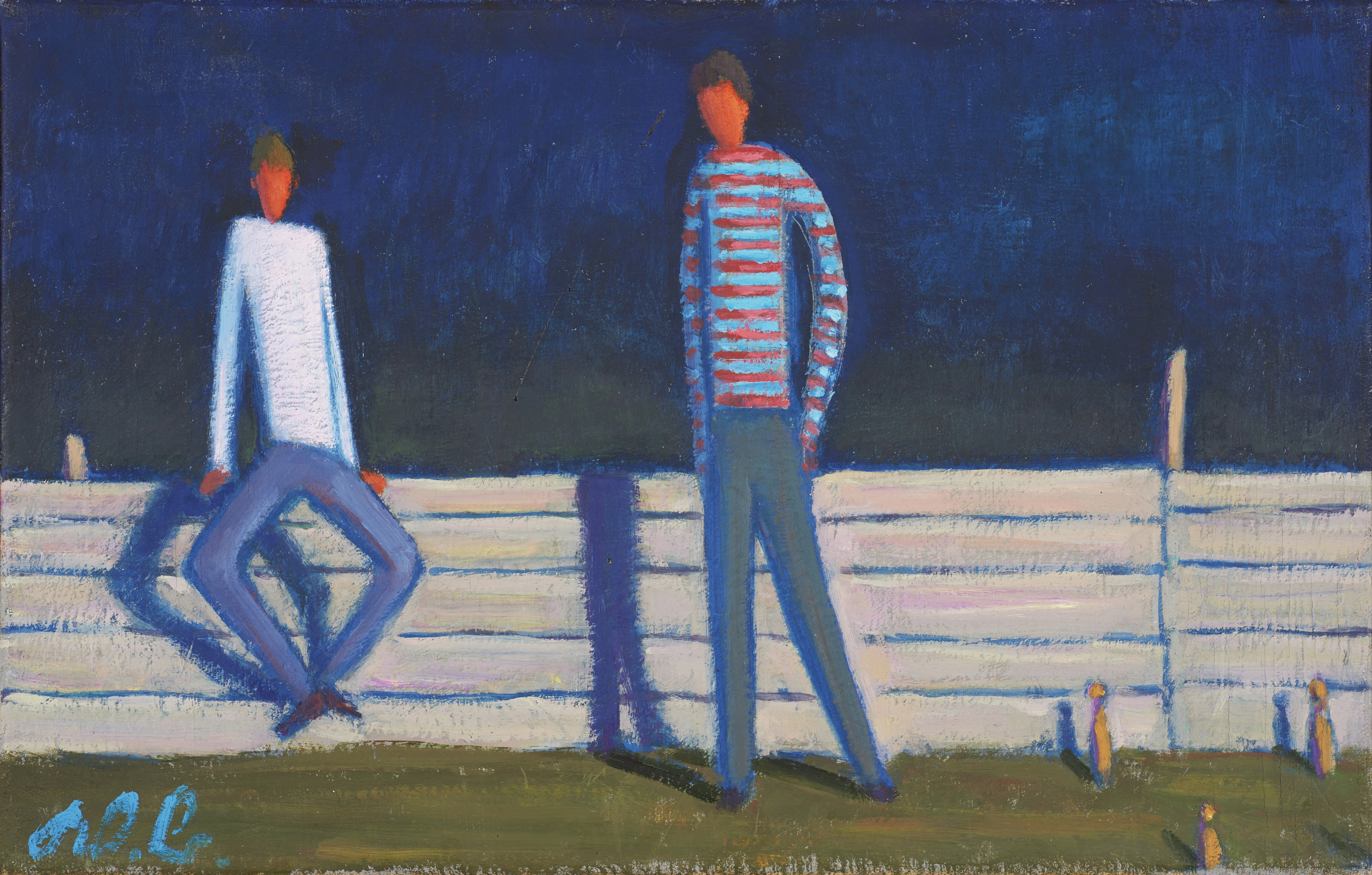 Das Stehen der Figuren, deren Vertikalität ist Ausgangspunkt der Bildidee. Es entsteht eine bildbegründende Spannung zwischen der Vertikalen der Einzelfigur und der Entwicklung der Gesamtkonfiguration in der Horizontalen. Dieses Bildmuster lässt in der Folge Werner Berg regelrecht nach Ereignissen suchen, die das Zusammentreffen mehrerer Figuren – im Stehen – mit sich bringen: Kegler, Eisschützen, Böllerer, Wartende“, schreibt Barbara Biller.