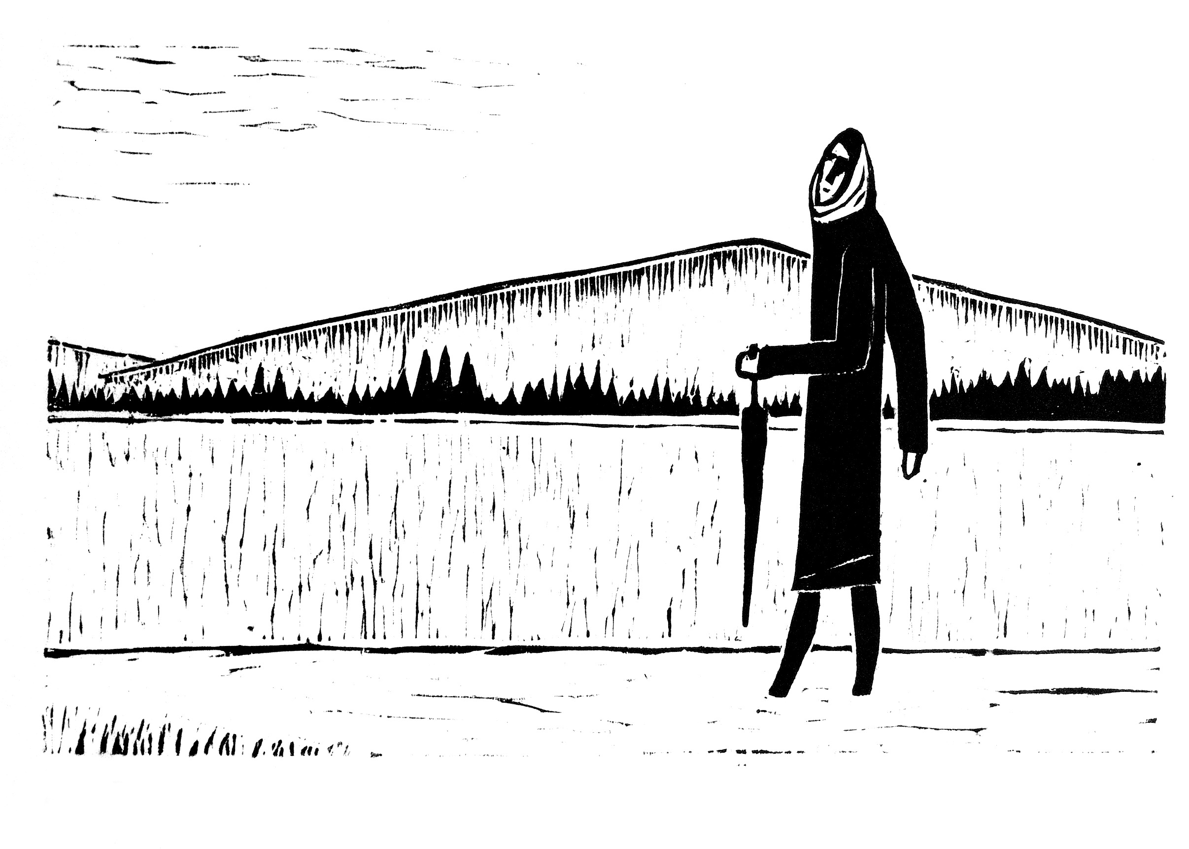 Schreitende mit Schirm