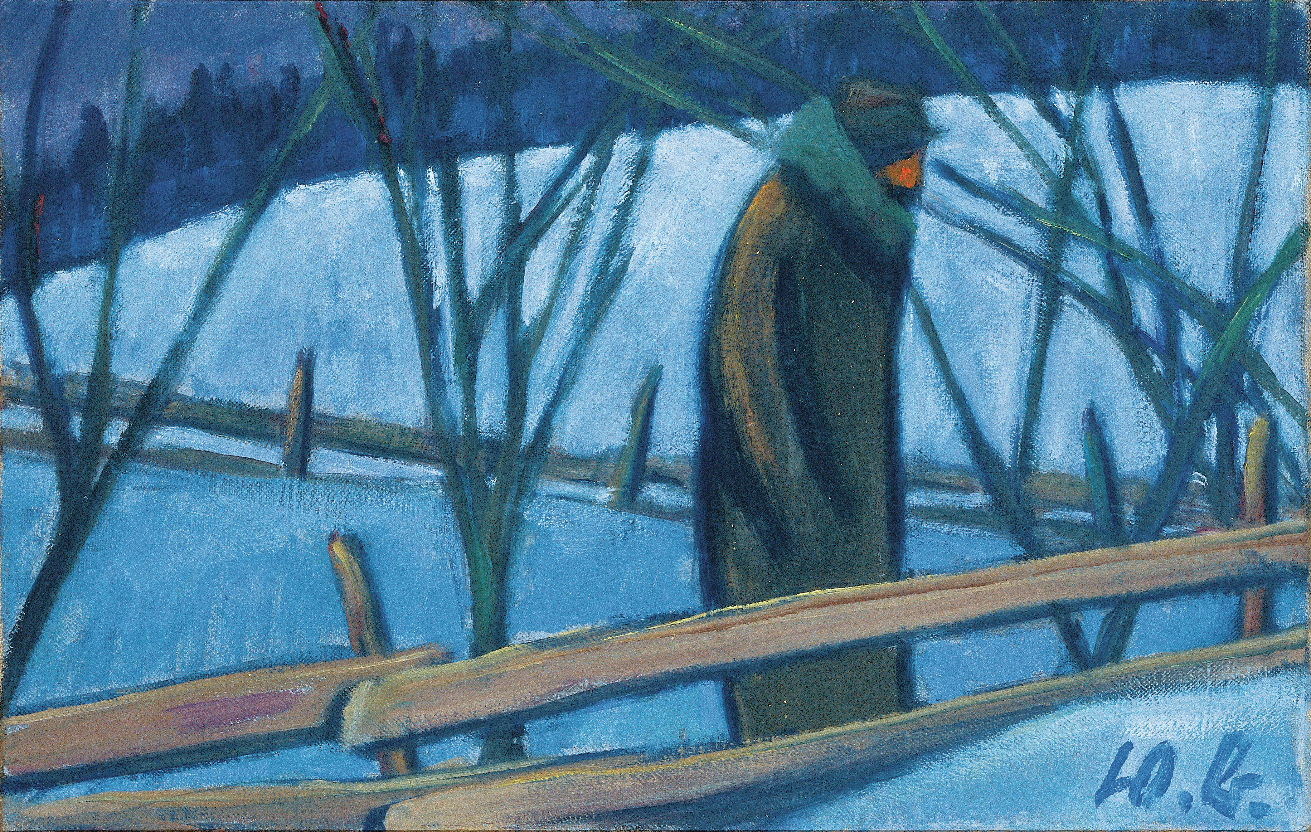 Schreitender zwischen Zäunen