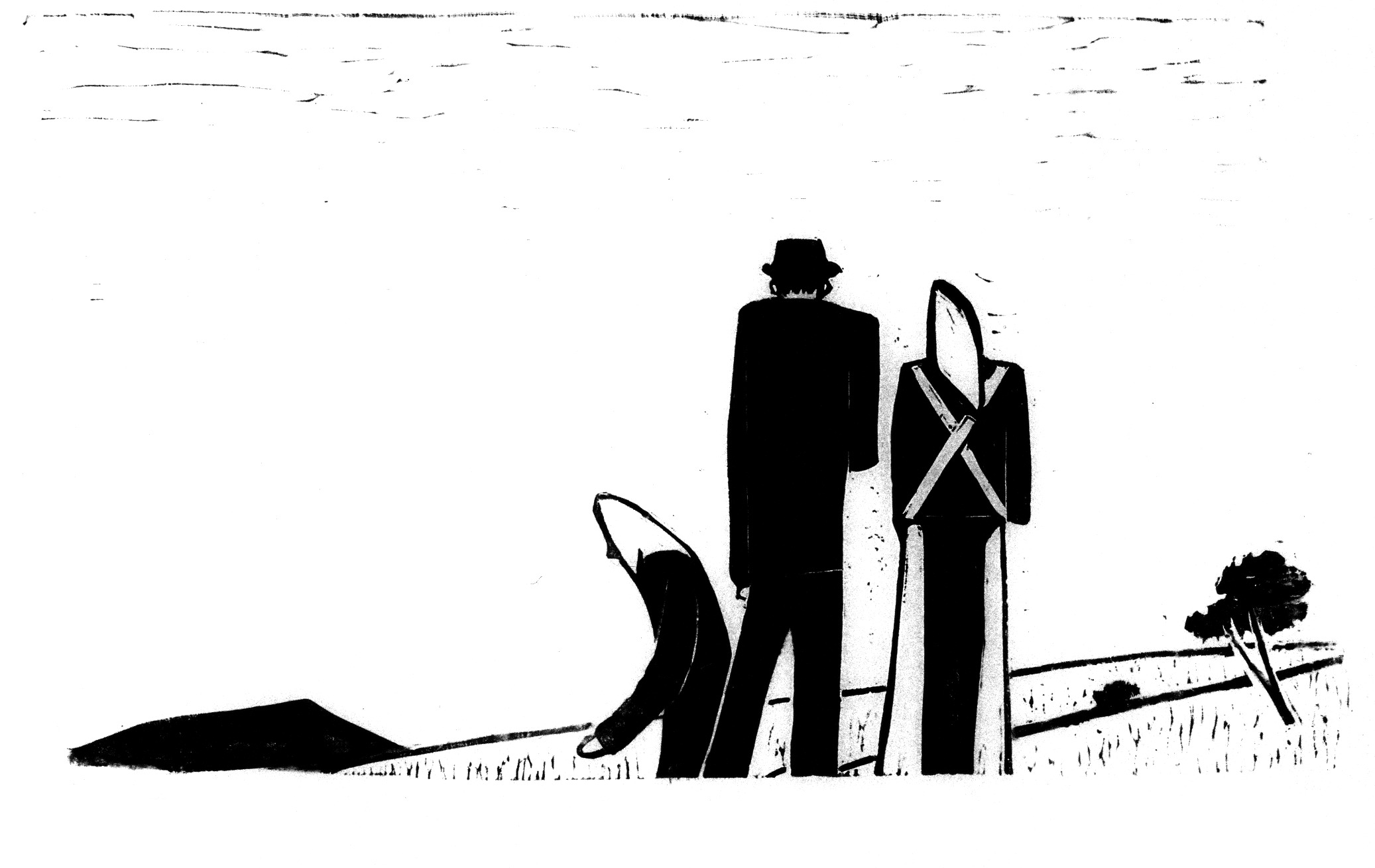 Drei Figuren bergabwärts (1. Zustand)